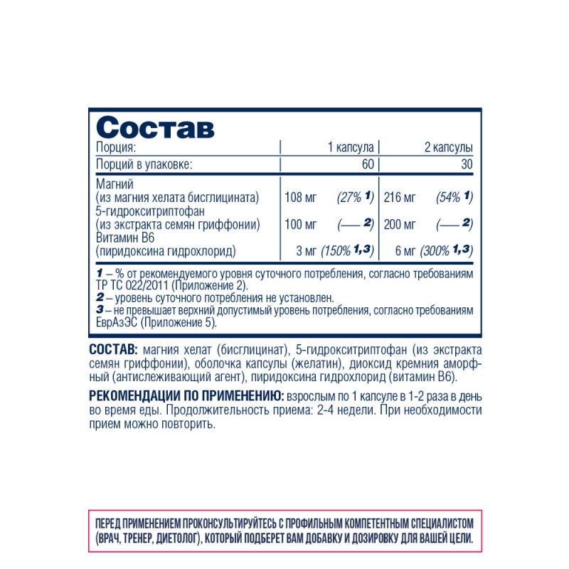 5-гидрокситриптофан, Магний хелат бисглицинат и Витамин В6