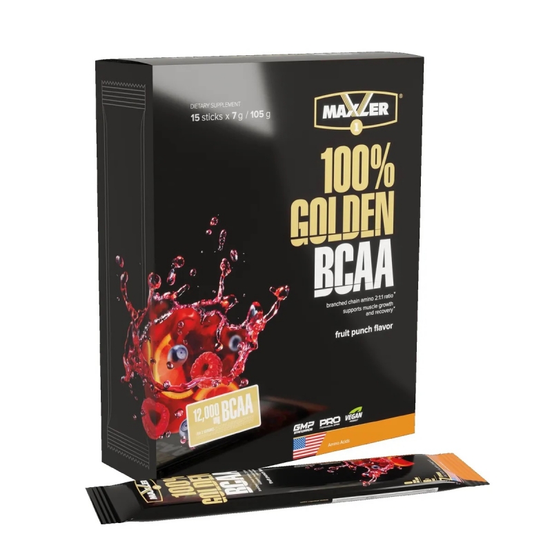 100% Golden BCAA компании Maxler – это мощная формула, содержащая аминокислоты с разветвленными цепями (BCAA) в классическом соотношении 2:1:1 (L-Лейцин, L-Изолейцин, L-Валин). BCAA – основной материал для построения мышц. Прием BCAA необходим любому атлету, так как они играют важную роль в увеличении мышечной массы, в восполнении энергетических запасов, способствуют сжиганию жира и защите мышц от разрушения. Организм не вырабатывает данные аминокислоты, поэтому важно получать BCAA в виде специальных добавок. Порошковый 100% Golden BCAA хорошо усваивается, быстро снабжая мышцы незаменимыми аминокислотами. Продукт представлен в различных вкусовых вариациях, что позволяет насладиться не только вкусным, но и полезным напитком.
