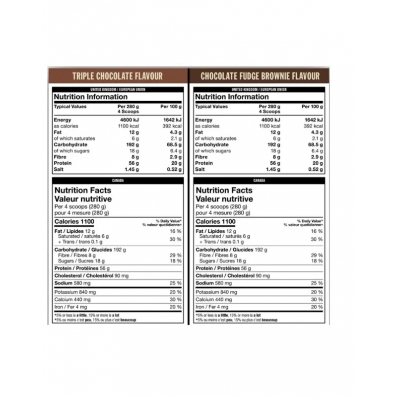 Ингредиенты: CLEAN-CARB™ смесь (углеводы с большим молекулярным весом из ячменного крахмала), мальтодекстрин, левулоза, инулин (из цикория), пшеничное и соевое волокно), ISOSTACK10™ протеиновая смесь (изоляты сывороточного протеина CFM-92 и ISO-95, концентраты сывороточного протеина WPC-85 и WPC-80, сывороточные пептиды, молочный протеин, мицеллярный казеин, кальция казеинат, обезжиренные изоляты яичных белков и желтков), LIPOTHERM™ смесь полезных жиров (триглицериды со средней цепью из кокосового масла, CLA, льняное масло, масло огуречника), INTRASORB™ смесь, улучшающая усвоение питательных веществ (colostrum с высоким содержанием иммунноглобулин, лактоферрина, EGF, IGF-1 и IGF-2, альфа липоевая кислота, D-пинитол, инозитол, 4-гидроксиизолейцин), натуральные ароматизаторы, лецитин.