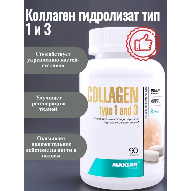 Коллаген гидролизат тип 1 и 3 Collagen Type 1 and 3 90 табл (Maxler)