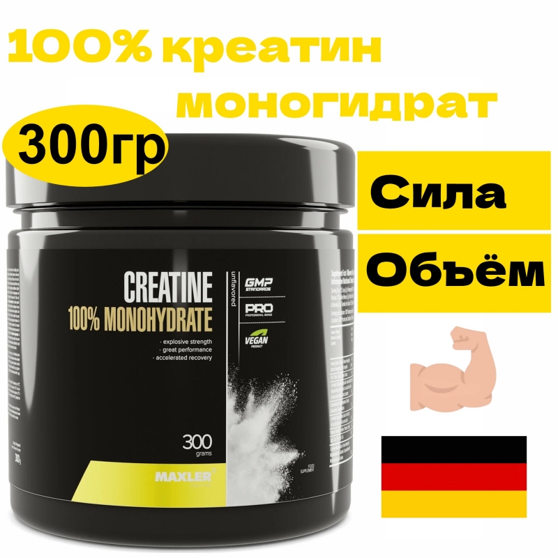 100% Креатин моногидрат порошок Сила и объем мышц Creatine 300 гр. (Maxler)