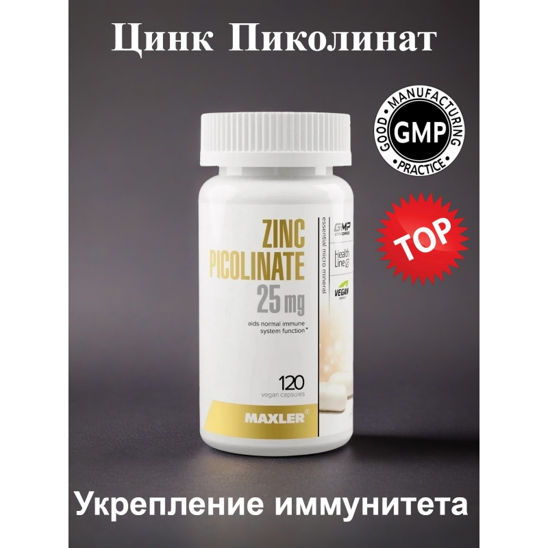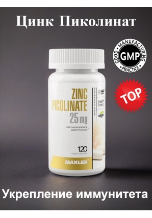 Цинк Пиколинат Укрепление иммунной системы Zinc Picolinate 25 мг 120 капс (Maxler)