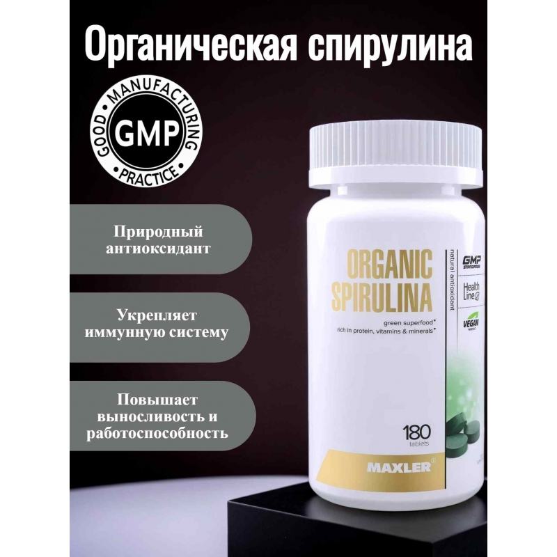 Спирулина в таблетках органическая Organic Spirulina 180 табл (Maxler)
