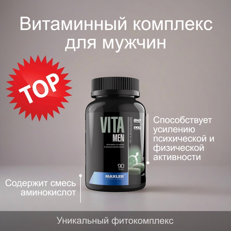 Уникальный фитокомплекс с минерами и витаминами VitaMen помогает всем мужчинам усилить физическую и психическую активность, которая играет немаловажную роль не только в жизни спортсмена, но и в жизни неактивного человека. Этот комплекс значительно ускоряет все обменные процессы, происходящие в человеческом мозгу. Кроме того, VitaMen оказывает положительное действие на простату, помогает избавиться от постоянных проблем с пищеварительной системой, а также помогает свести к минимуму все негативные последствия, возникающие в организме после частых стрессовых ситуаций. Для спортсменов этот комплекс полезен тем, что помогает ускорять процессы наращивания мышечной массы. В нем содержится комплекс быстро усвояемых аминокислот, которые способствуют росту мышц.