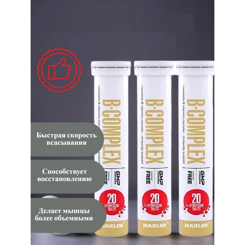 Витамины группы Б шипучие B-Complex 3 ТУБЫ по 20 шип.табл (Maxler)