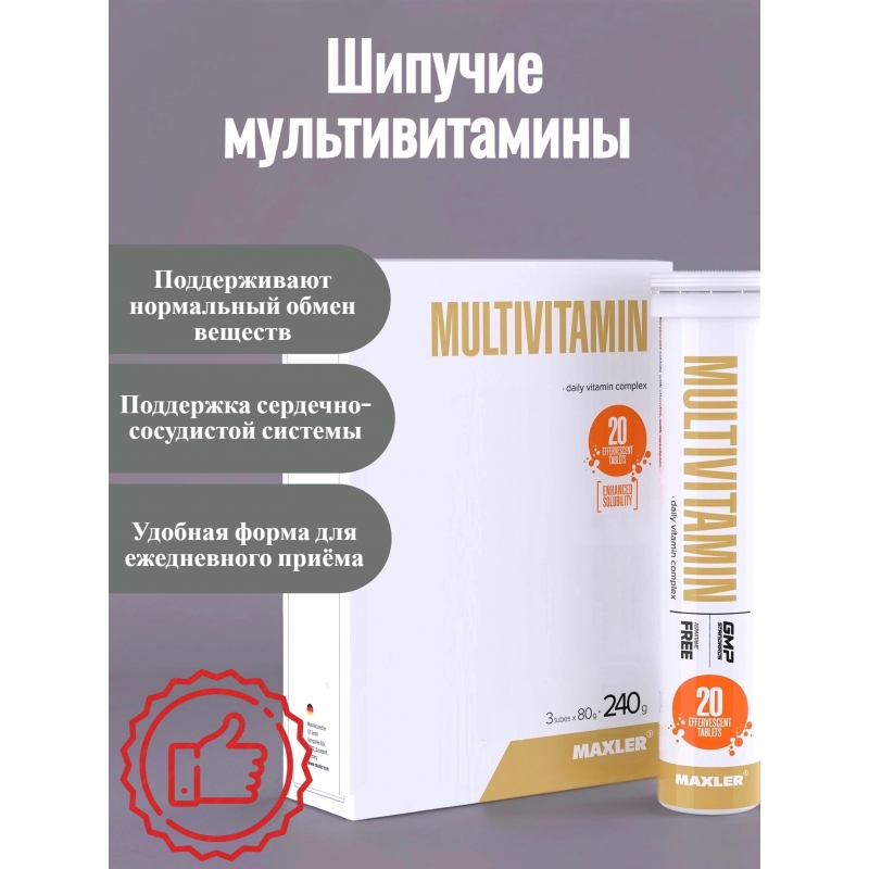 Шипучие мультивитамины Укрепление иммунной системы Multivitamin 3 ТУБЫ по 20 шип.табл (Maxler)