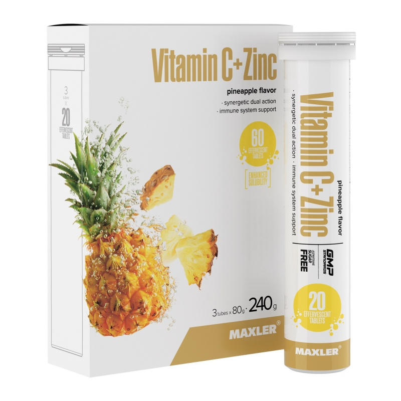 Витамин Ц + Цинк Vitamin C + Zinc 3 ТУБЫ по 20 шип.табл (Maxler)